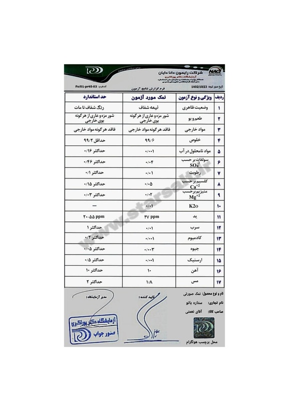 نمک صورتی پودر نمکدانی ممتاز صادراتی(نه نارنجی) با تضمین اصالت و آنالیز آزمایشگاه با خلوص ۹۹.۶٪