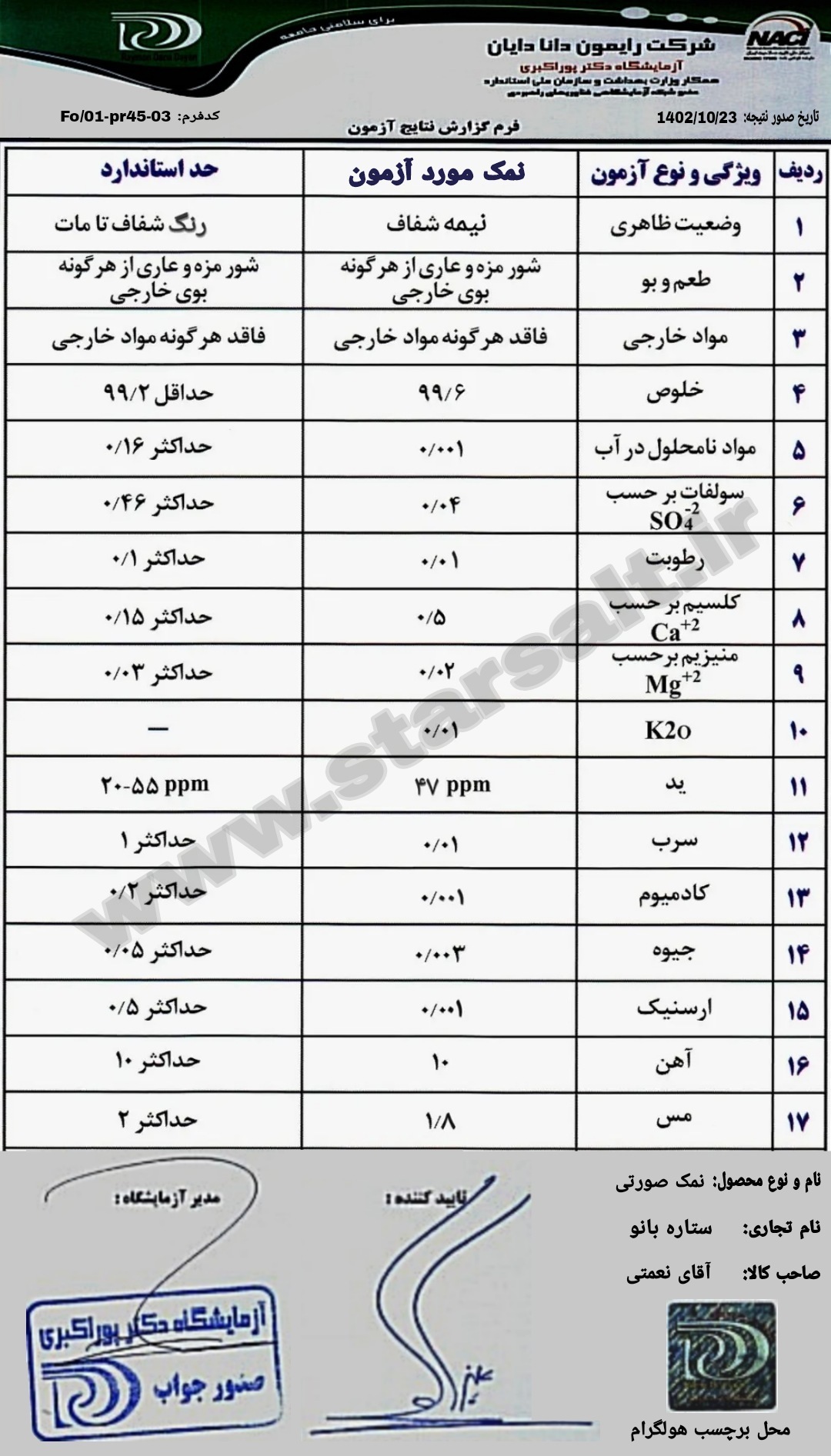 اللهم عجل لولیک الفرج.،،،،،،،، توجه تمامی محصولات سایت ستاره بانو اصل و معدنی و با ضمانت اصالت میباشد. ((تمامی نمک ها موجود مستقیم از معدن تهییه و صفرتا صد کار اعم از خُرد کردن سنگ نمک،دانه بندی و بسته بندی در مجموعه ستاره بانو انجام میشود)) حداقل مبلغ فروش سایت ۳۰۰ هزارتومن میباشد درگاه پرداخت و روش ارسال برای مبالغ زیر ۳۰۰ هزارتومن نمایش داده نمیشود، برای مشاهده تمامی محصولات پایین صفحه قسمت دسته بندی کلیک فرمایید... توجه: امکان خرید اقساطی محصولات در چهار قسط محیا میباشد، برای این منظور در صفحه پرداخت، درگاه ترب پی را انتخاب بفرمایید.